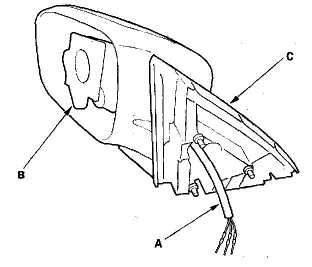 9. Route the wire harness (A) of the new actuator (B) through the hole in the bracket (C).