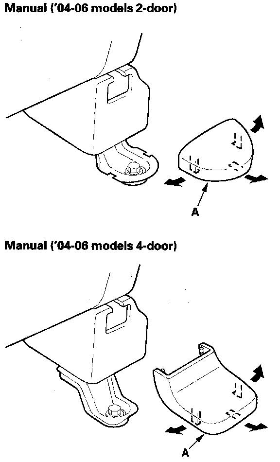 - '04-06 models passenger's seat: The triangle marks (A) on the anchor plate (B) and the lower anchor (C) must face the same side. Insert the anchor plate into the lower anchor, and make sure that it is locked securely.