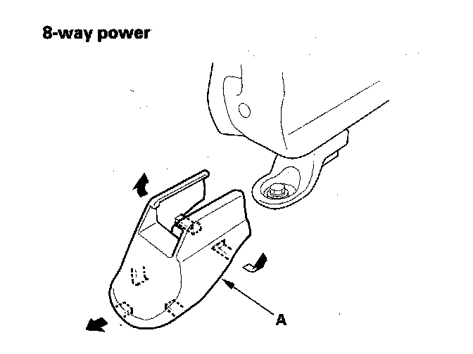 8. Lift up the front seat, then detach the harness clip (A), and disconnect the connector.