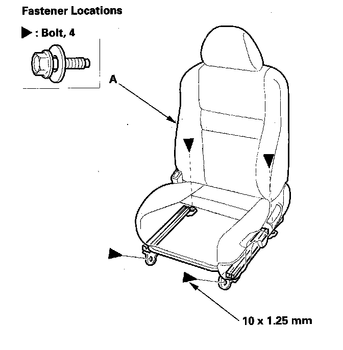 - Apply medium strength liquid thread lock to the front seat mounting bolts before reinstallation.