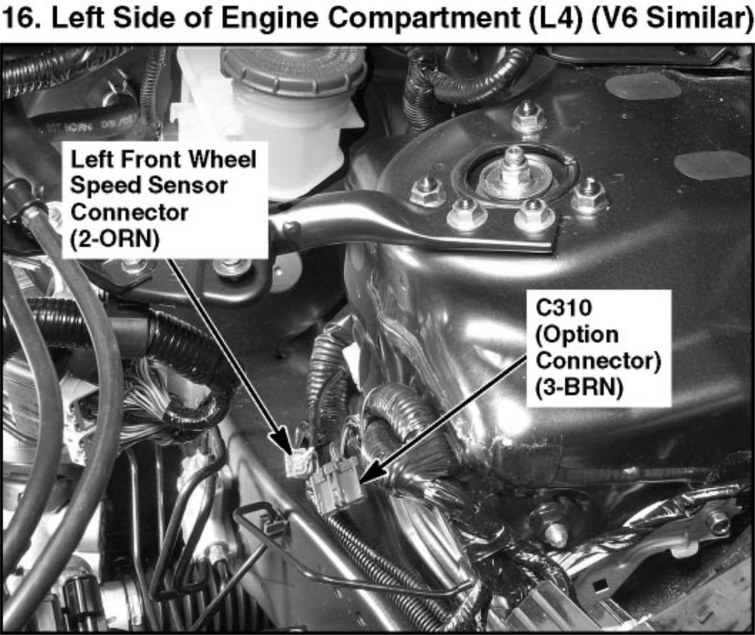 16. Left Side of Engine Compartment (L4) (V6 Similar):