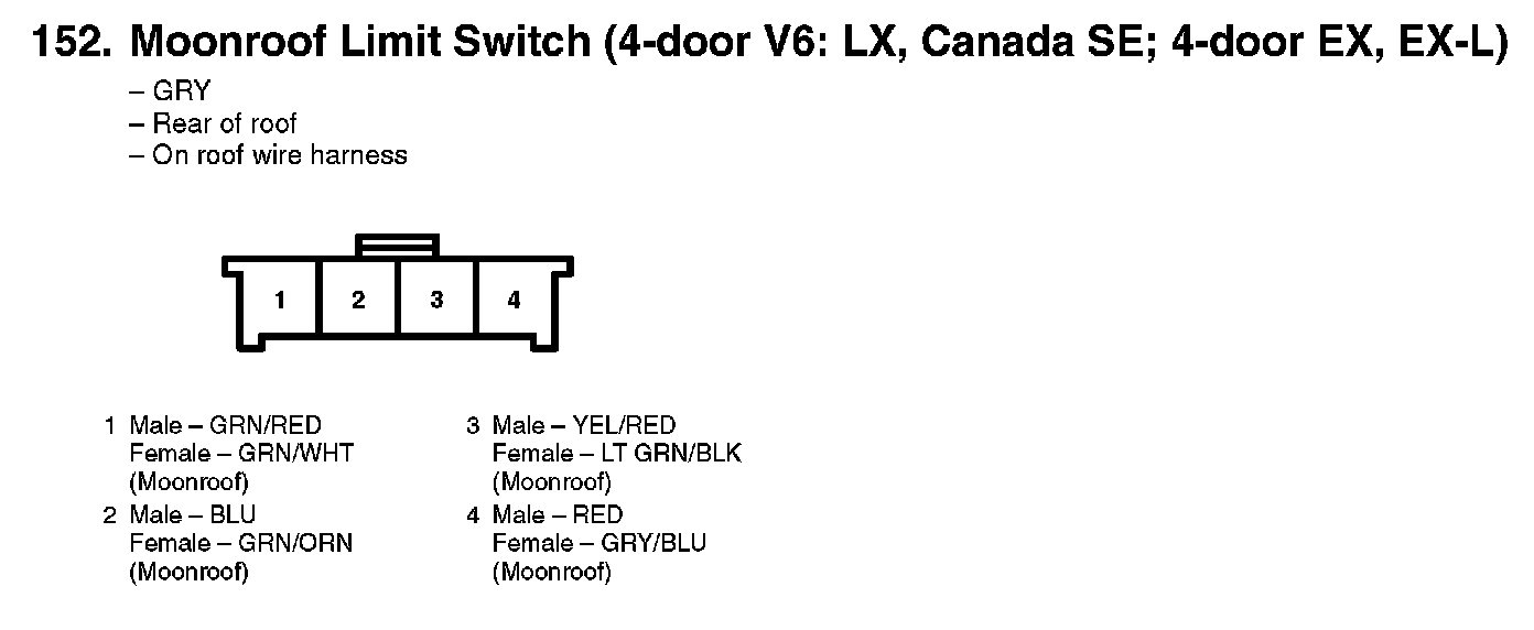 152. Moonroof Limit Switch (4-door V6: LX, Canada SE; 4-door EX, EX-L):