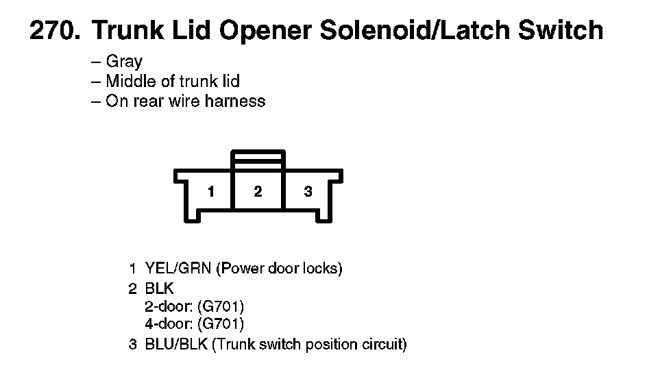 270. Trunk Lid Opener Solenoid/Latch Switch:
