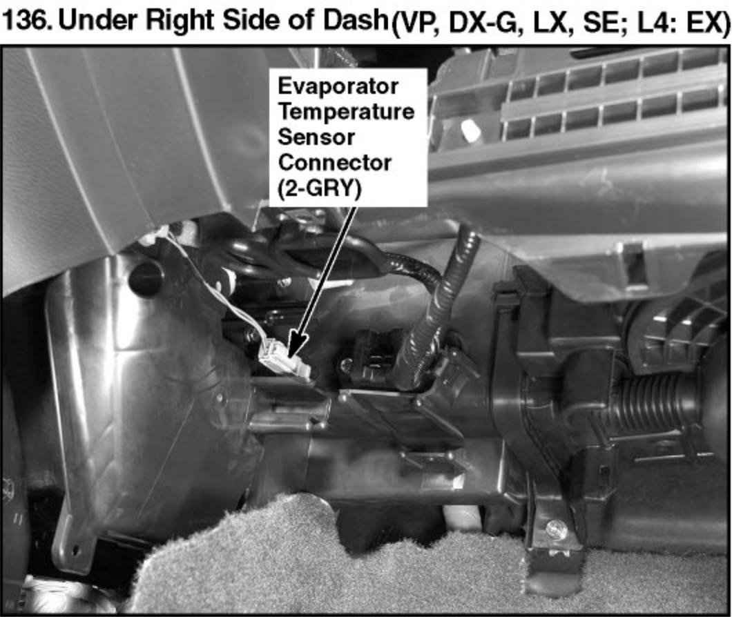 136. Under Right Side of Dash (VP, DX-G, LX, SE; L4: EX):