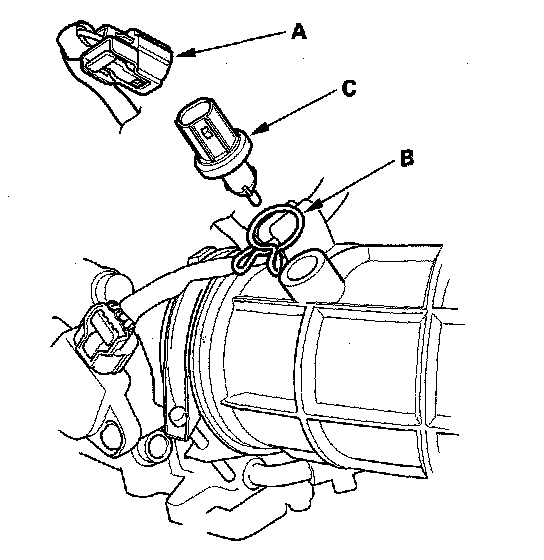 Remove the clamp (B) and the IAT sensor (C).