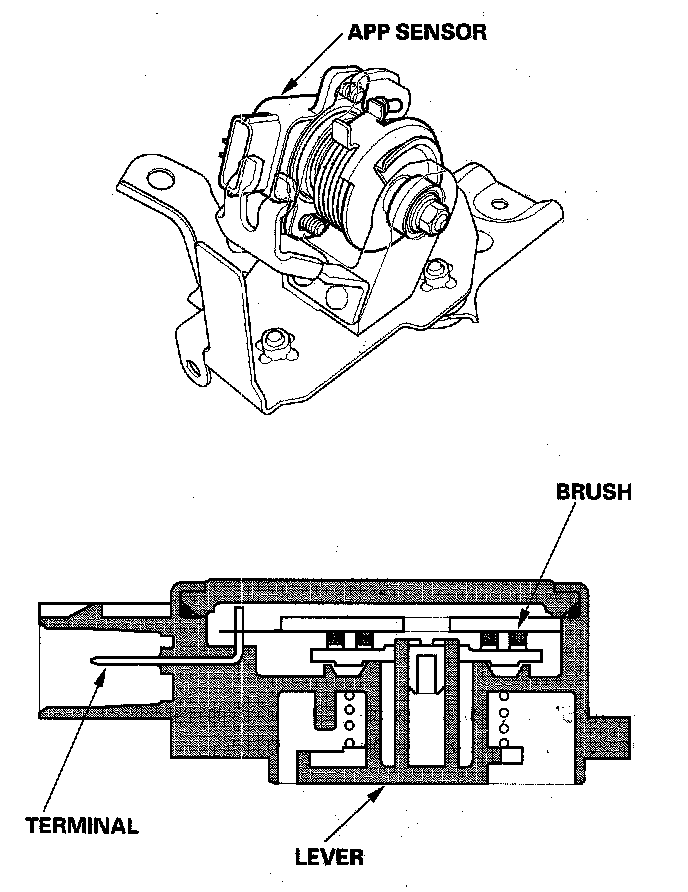 As the accelerator pedal position changes, the sensor varies the signal voltage to the ECM/PCM.