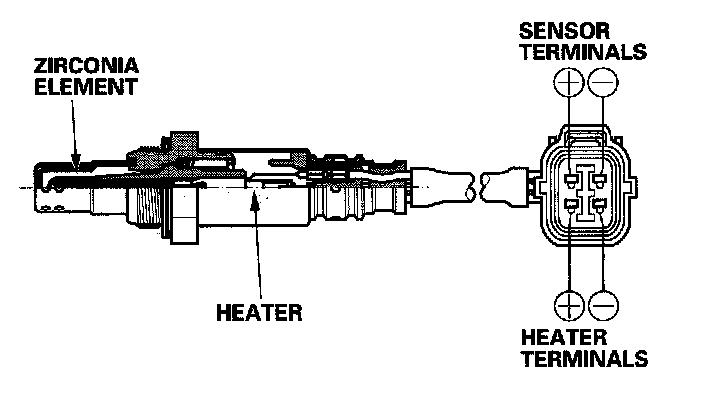 The A/F sensor operates over a wide air/fuel range. The A/F sensor is installed upstream of the TWC, and sends signals to the ECM/PCM which varies the duration of fuel injection accordingly.