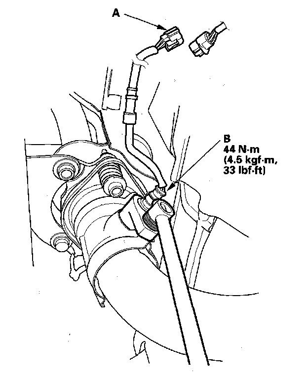 1. Disconnect the A/F sensor 4P connector (A), then remove the A/F sensor (B).
