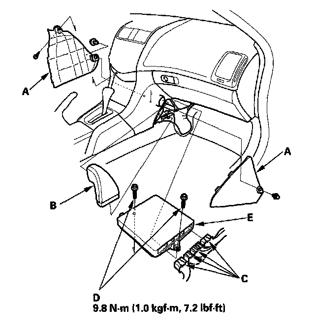 11. Remove the bolts (D), then remove the ECM/PCM (E).