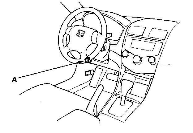 2. If the MIL stays on, connect the HDS to the data link connector (DLC) (A) located under the driver's side of the dashboard.