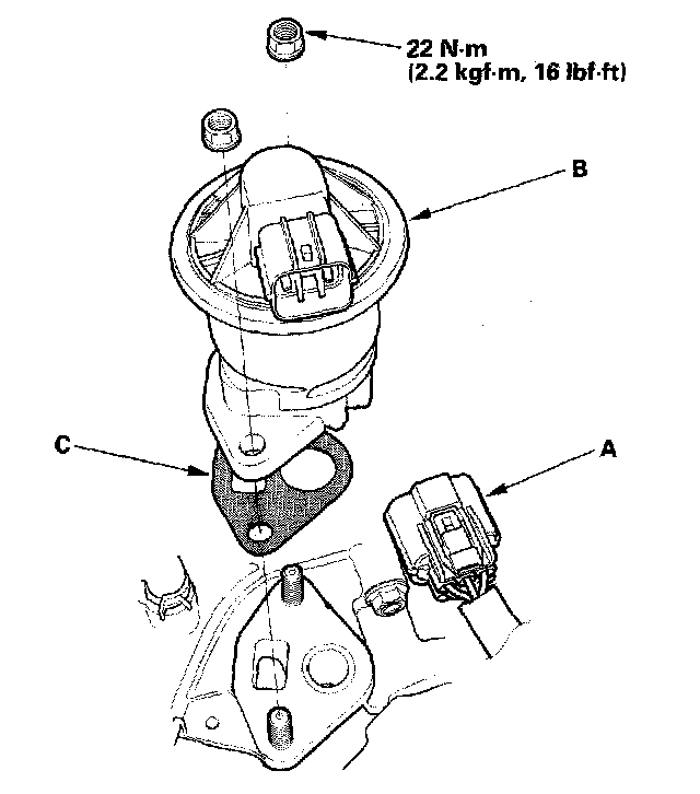 Install the valve in the reverse order of removal with a new gasket (C).