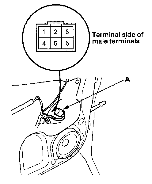 2. Disconnect the 6P connector (A) from the window motor.