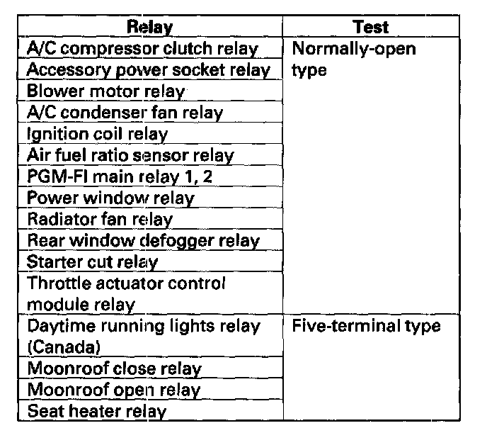 Power Relay TestUse this chart to identify the type of relay, then do the test listed for it.