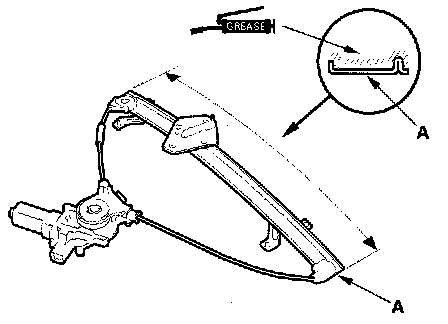 7. Apply multipurpose grease to all the sliding surfaces of the regulator (A) where shown.