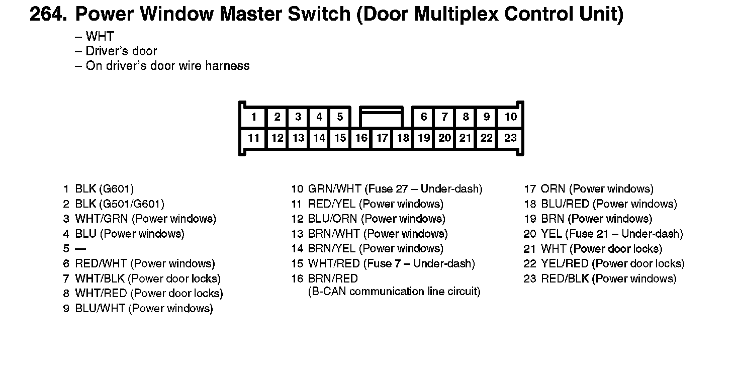 264. Power Window Master Switch (Door Multiplex Control Unit):