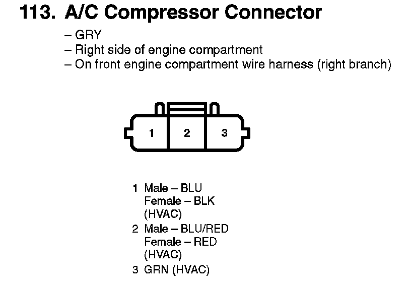 113. A/C Compressor Connector:
