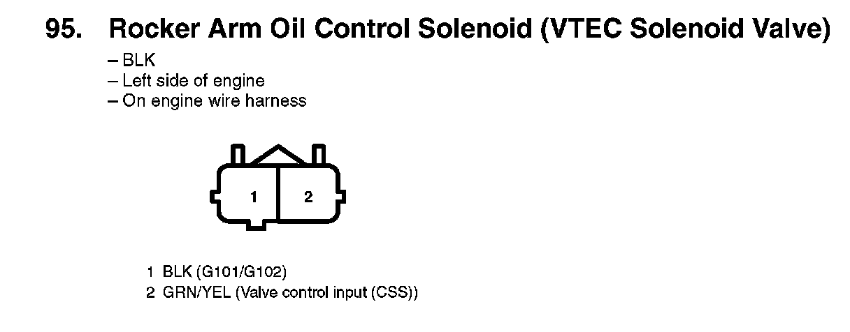95. Rocker Arm Oil Control Solenoid (VTEC Solenoid Valve):