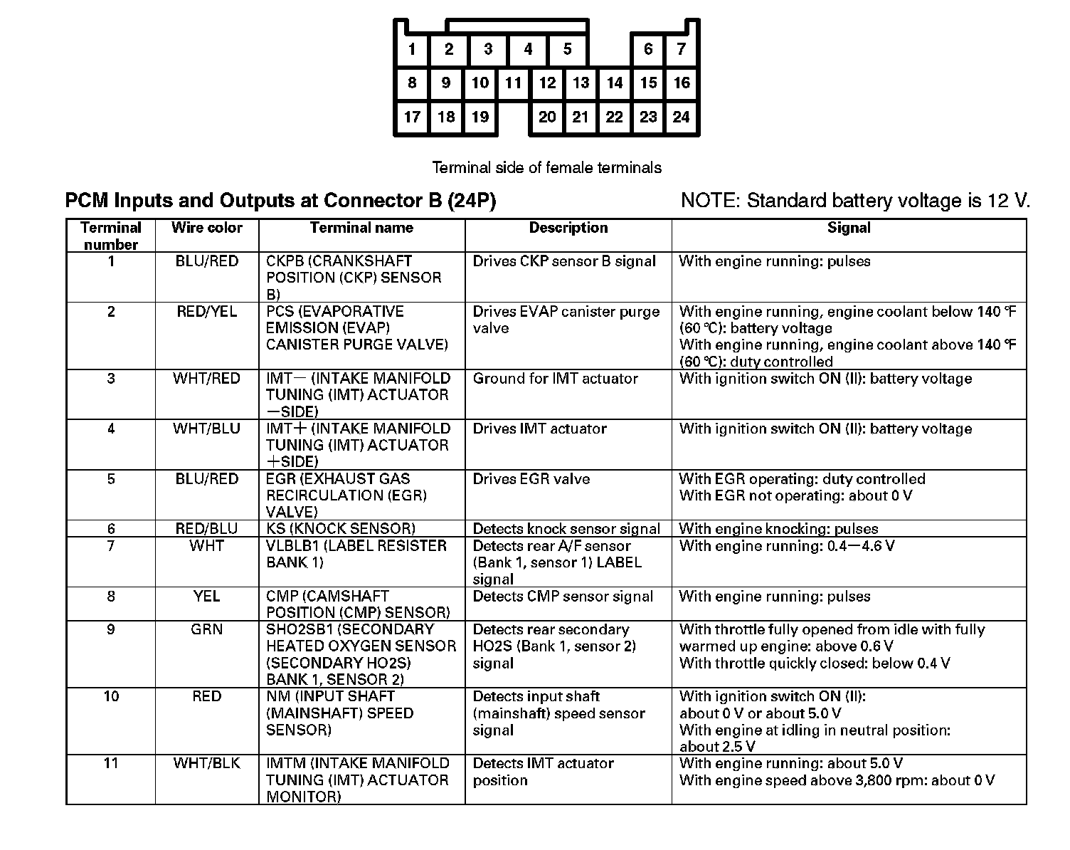 PCM Inputs And Outputs At Connector B (24P) Part 1: