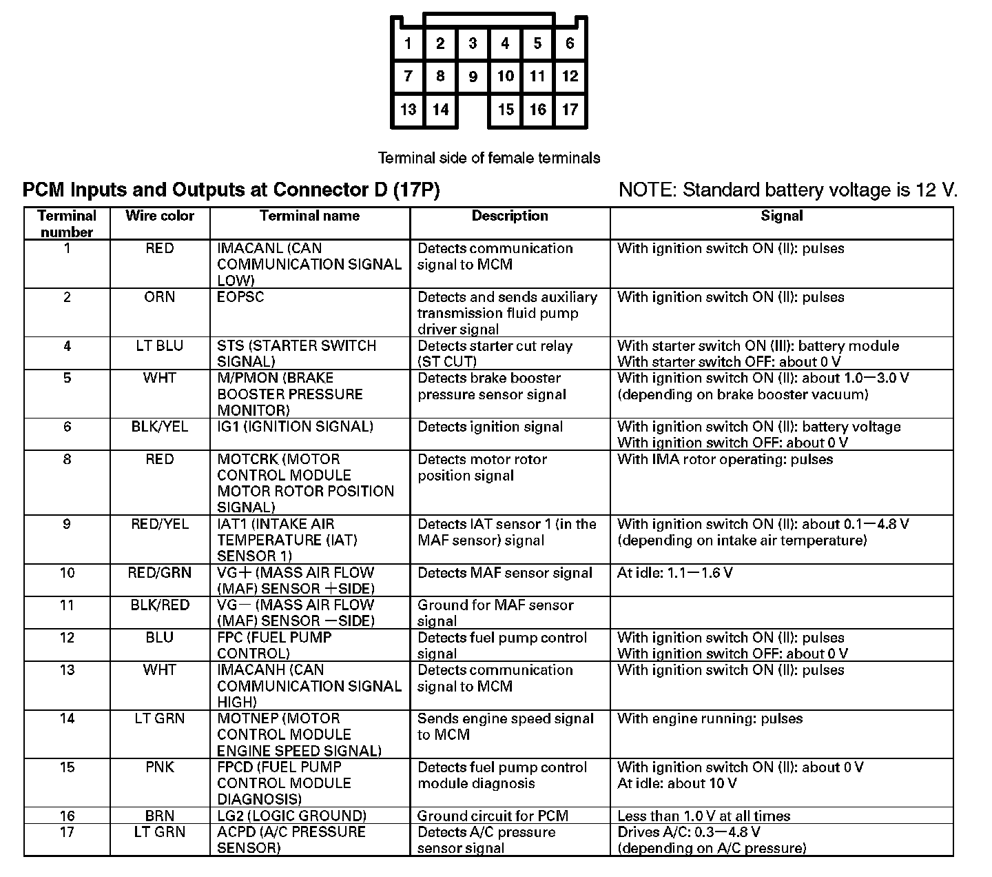 PCM Inputs And Outputs At Connector C (22P) Part 1: