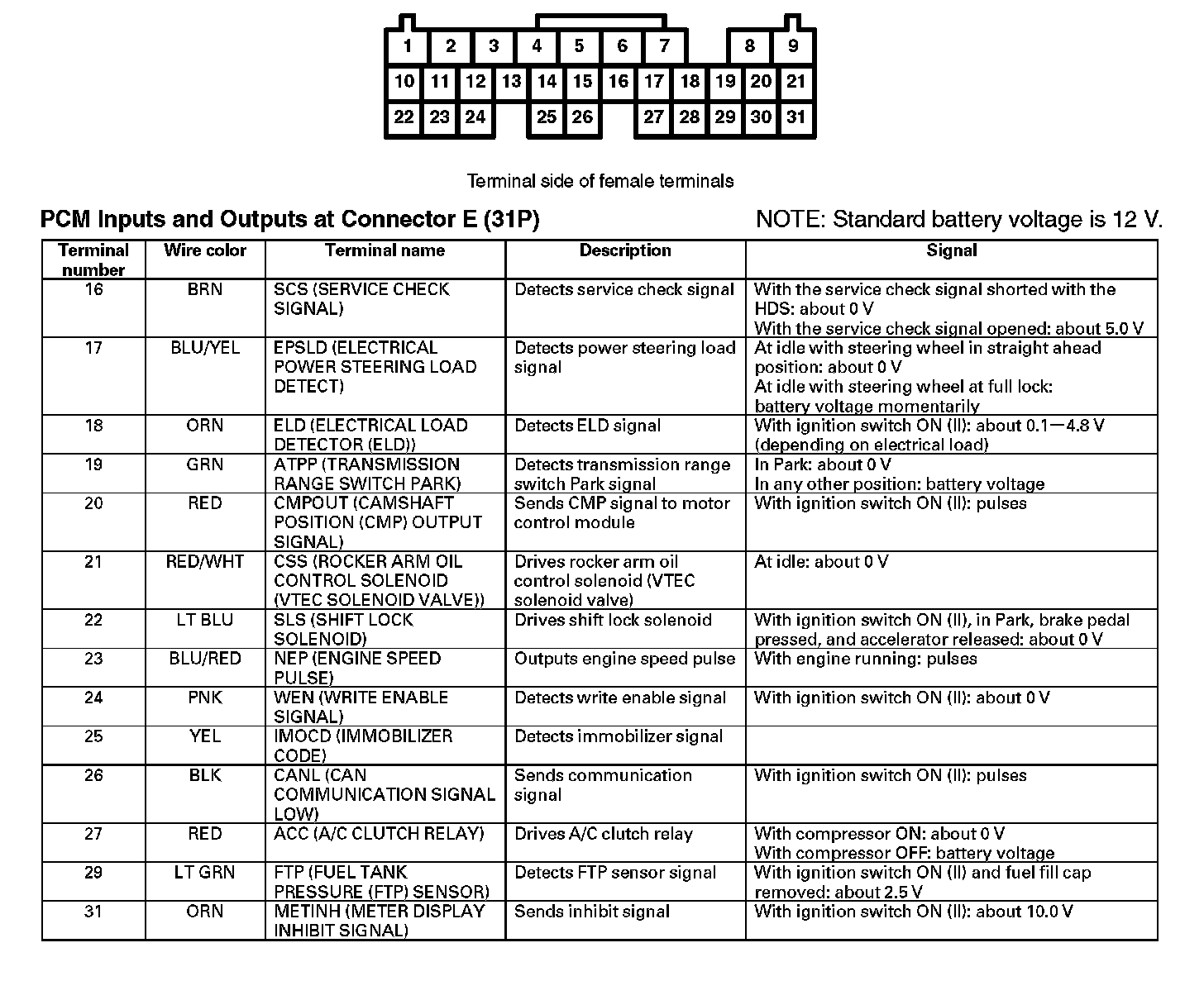 PCM Inputs And Outputs At Connector E (31P) Part 2: