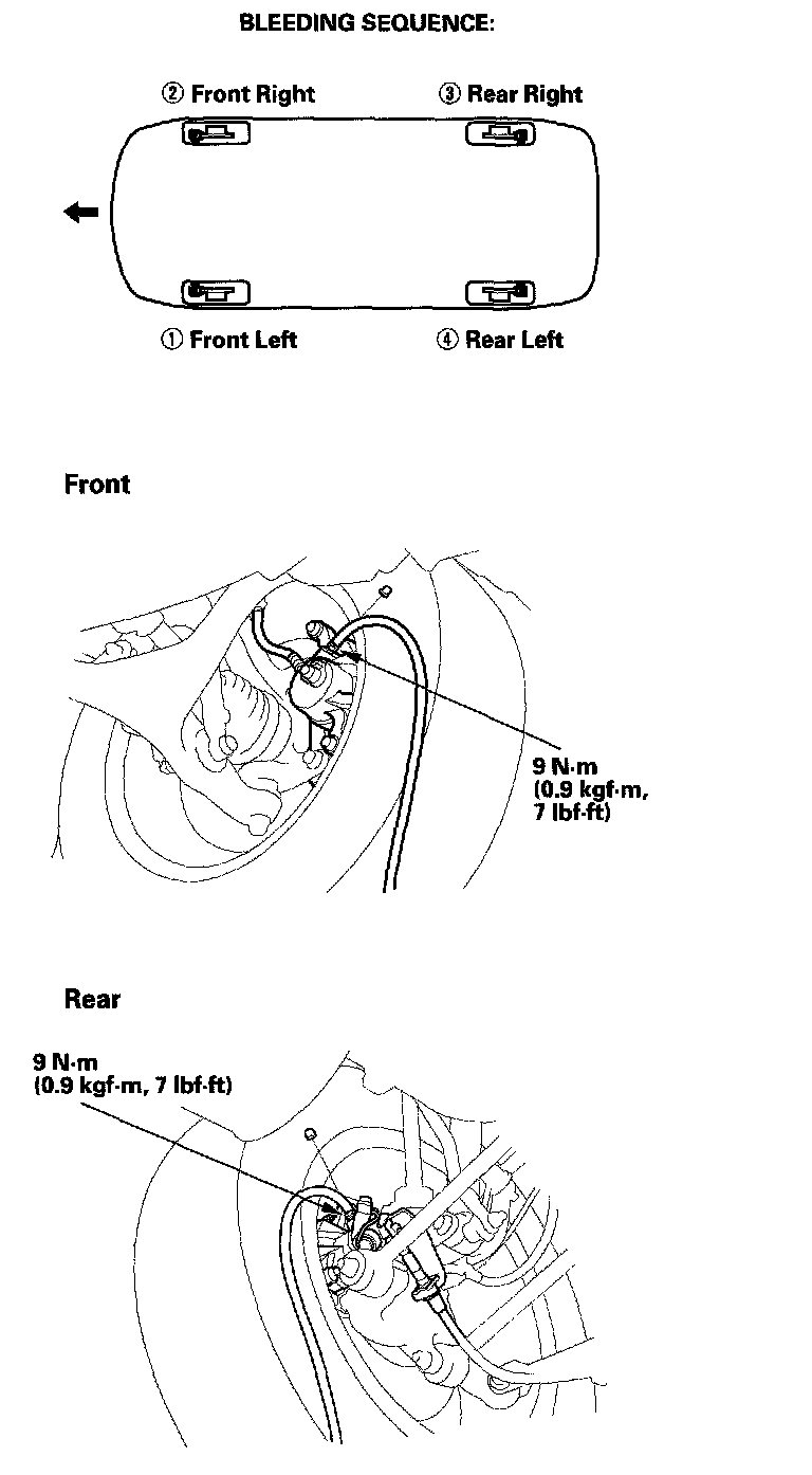 4. Starting at the left-front, loosen the brake bleed screw to allow air to escape from the system. Then tighten the bleed screw securely.