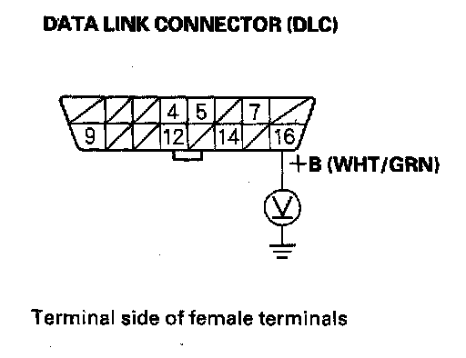 1. Measure voltage between DLC terminal No. 16 and body ground.