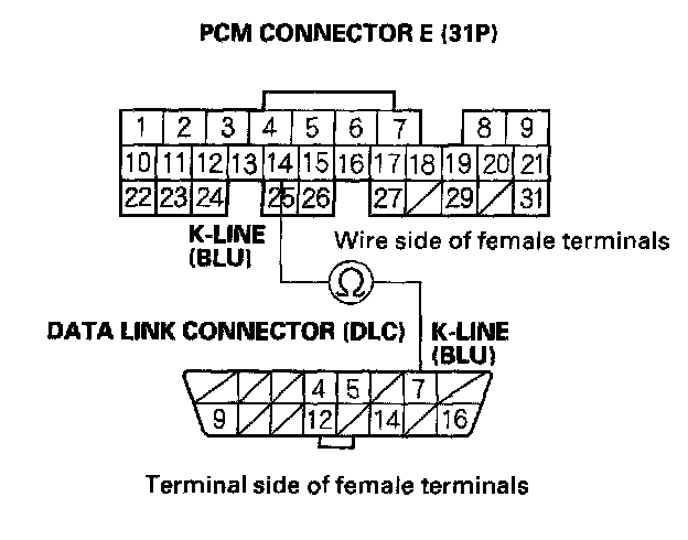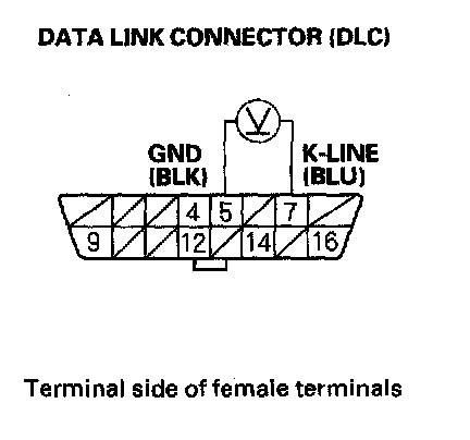 NO - Repair open in the wire between DLC terminal No. 7 and the PCM (E14). After repairing the wire, check for Temporary DTCs or DTCs with the HDS and go to the indicated DTC's troubleshooting,