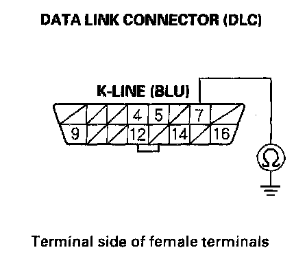 9. Check for continuity between DLC terminal No. 7 and body ground.