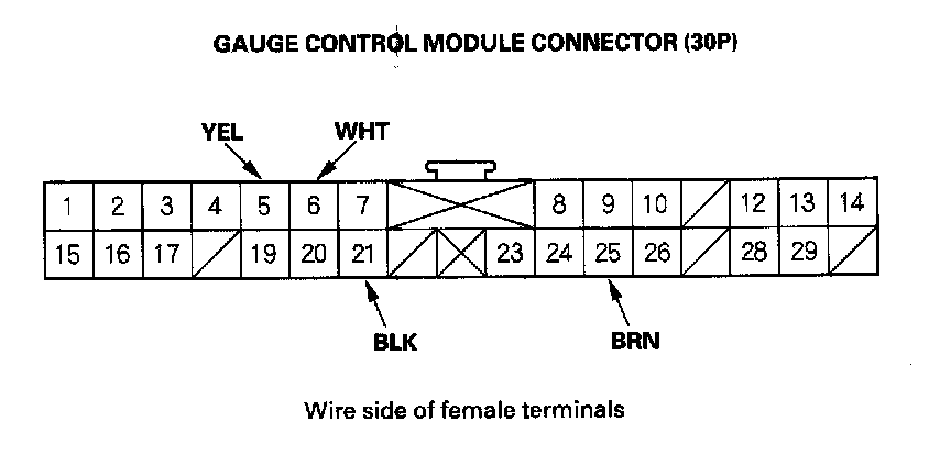 5. Disconnect the connector from the gauge control module, and make these input tests at the connector.