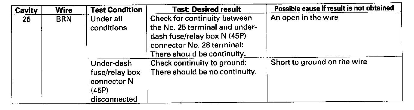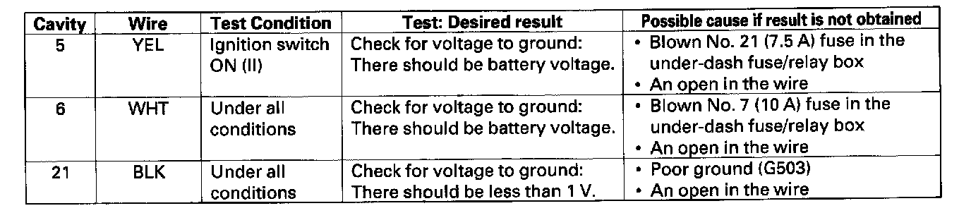 4. Reconnect the connector, and make these input tests at the connector.