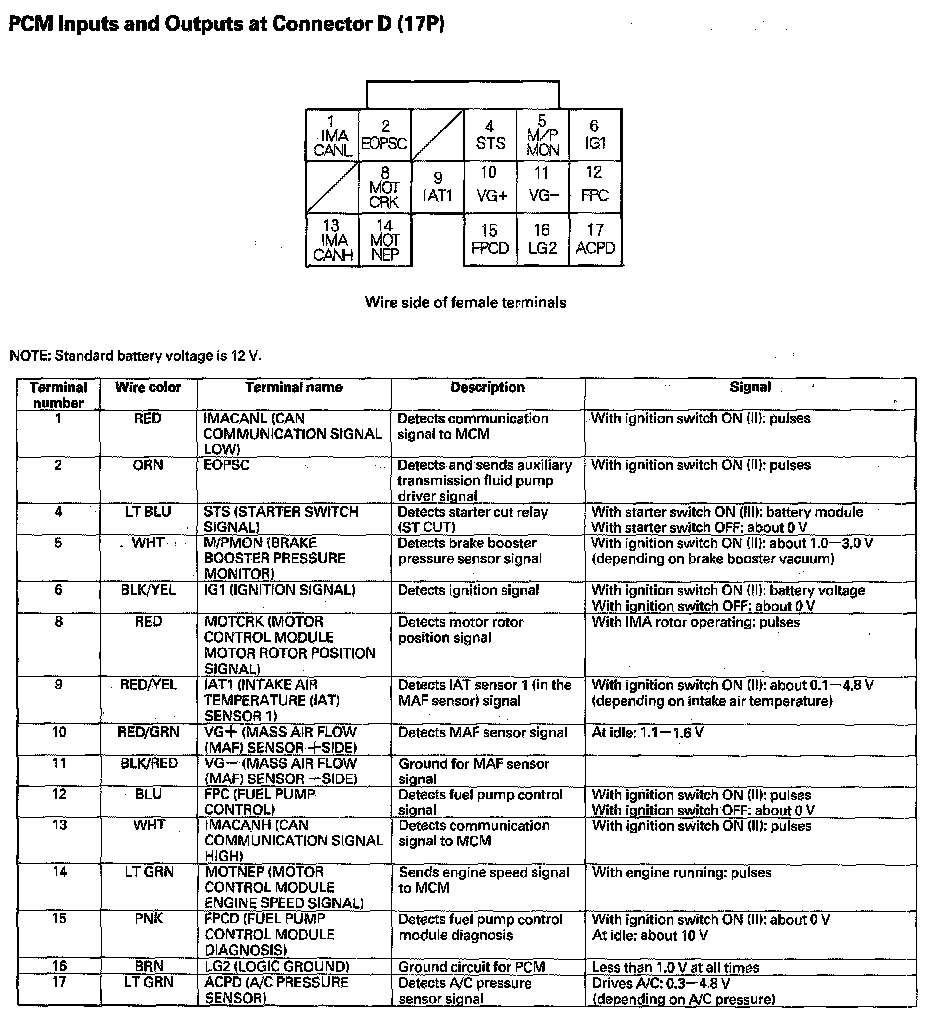 PCM Inputs And Outputs At Connector D (17P):