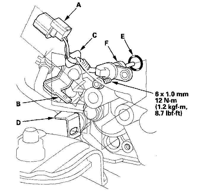 5. Install a new O-ring (E) on the new ATF temperature sensor (F).