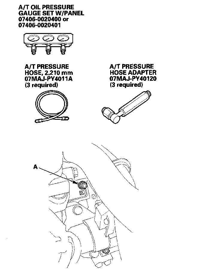 ^ A/T clutch pressure gauge set 07406-0020400 or 07406-0020401