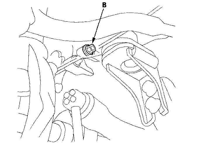 12. Connect the oil pressure gauge to the 1st clutch pressure inspection port (B).
