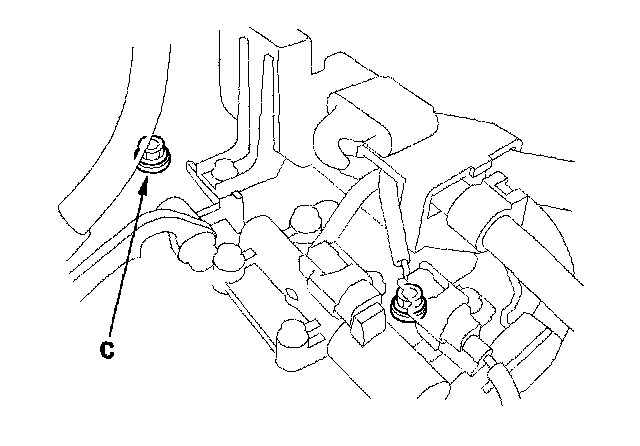 13. Remove the air intake duct and air cleaner housing, and connect the oil pressure gauge to the 11st-hold clutch pressure inspection port (C).
