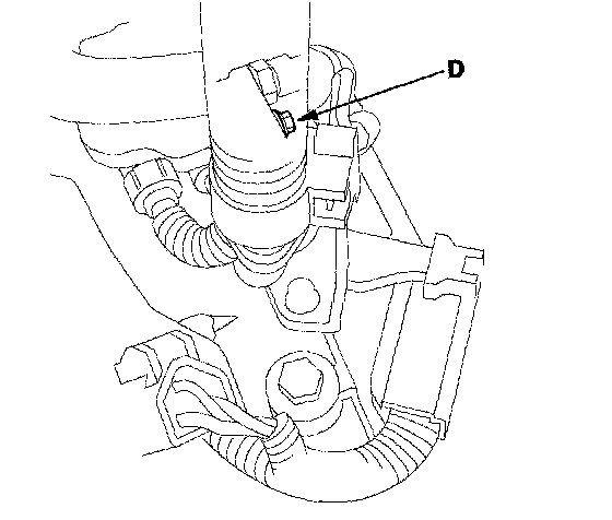 14. Connect the oil pressure gauge to the 2nd clutch pressure inspection port (D). Then temporarily install the air cleaner housing and air intake duct.