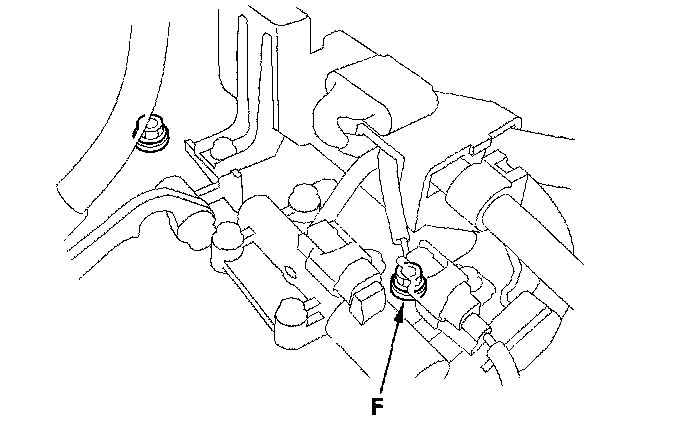 26. Shift to the D position, and measure the 4th clutch pressure at the 4th clutch pressure inspection port (F) while holding the engine speed at 2,000 rpm, then in about 15 seconds, the transmission will shift to the 5th gear.