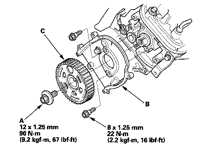 Apply new engine oil to the threads of the camshaft pulley mounting bolt.