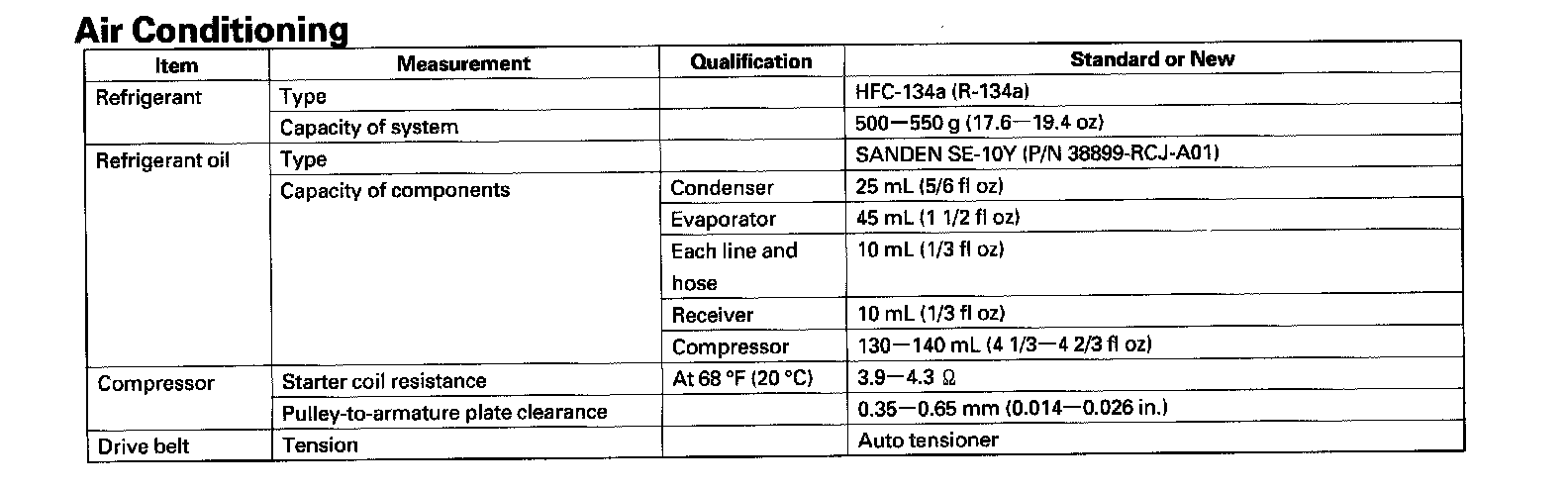 Air Conditioning - Standards And Service Limits: