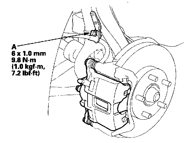 15. Install the brake hose mounting bolt (A), and tighten it to the specified torque.