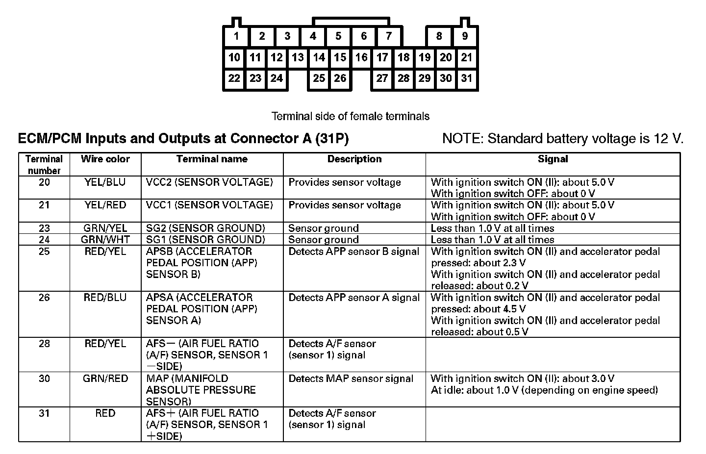 ECM/PCM Inputs And Outputs At Connector A (31 P) Part 2: