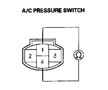 6. Check for continuity between the No. 1 and No. 4 terminals of the A/C pressure switch.