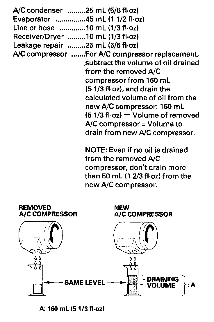 A/C Refrigerant Oil ReplacementRecommended PAG oil: DENSO ND-OIL 8