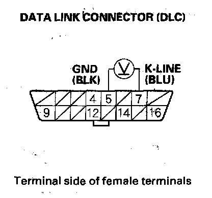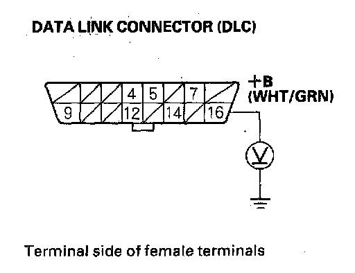 1. Measure voltage, between DLC terminal No. 16 and body ground.