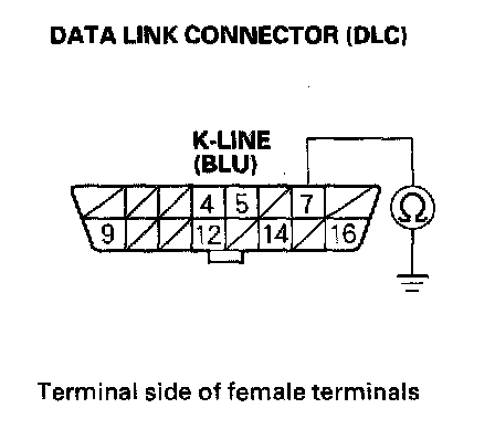 9. Check for continuity between DLC terminal No. 7 and body ground.