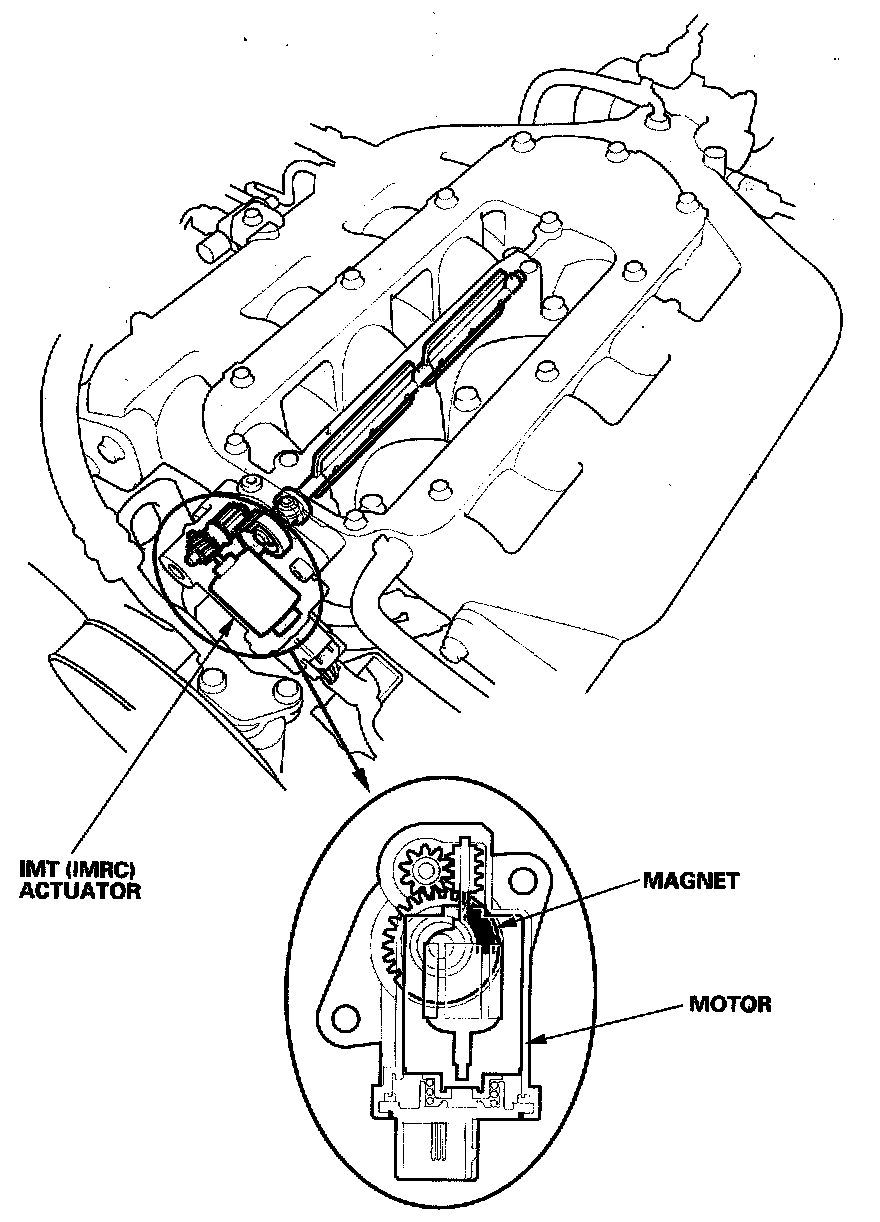 The intake manifold tuning (IMT) (intake manifold runner control (IMRC)) valve actuator has a sensor that detects the IMT (IMRC) valve position and sends it to the ECM/PCM.