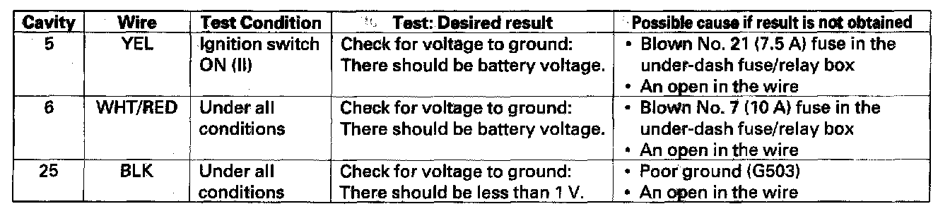5. Disconnect the connector from the gauge assembly, and make these input tests at the connector.