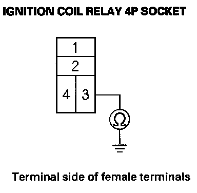 5. Check for continuity between ignition coil relay 4P socket terminal No. 3 and body ground.