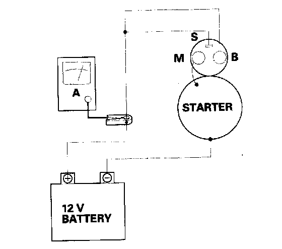 3. Connect the battery as shown. Make sure you disconnect the starter motor wire from the solenoid. If the starter pinion moves out, it is working properly.