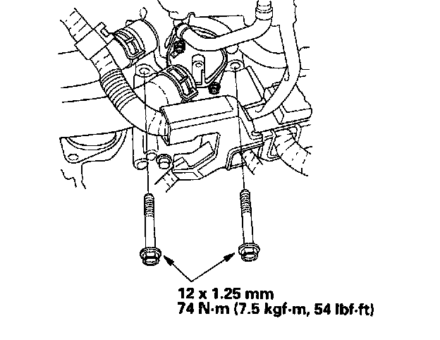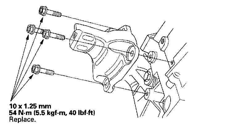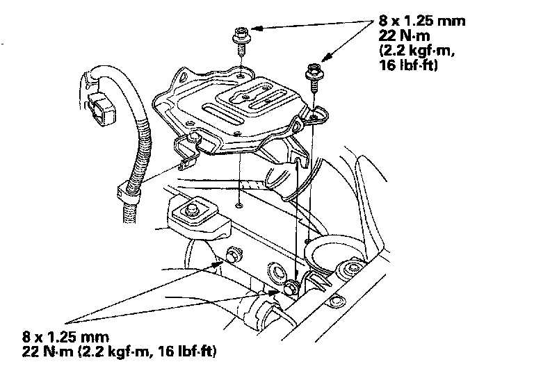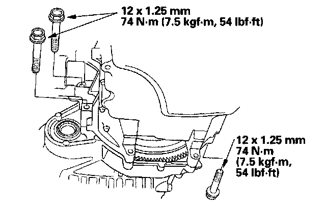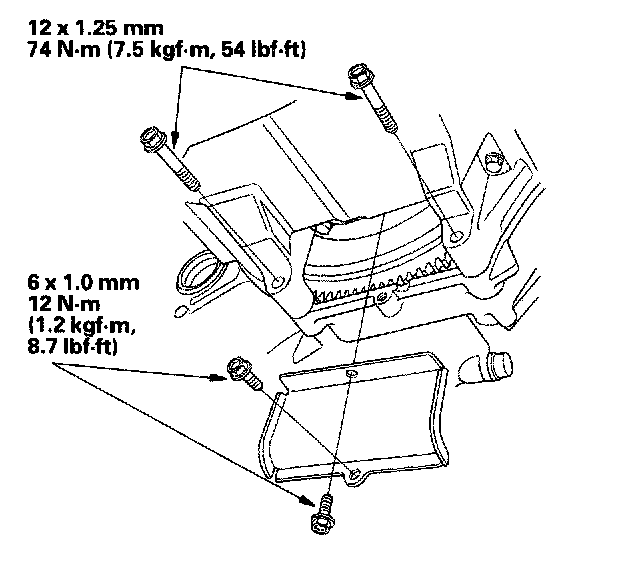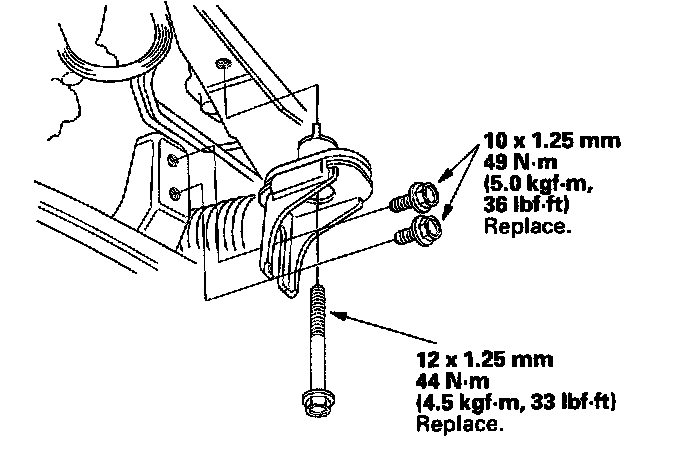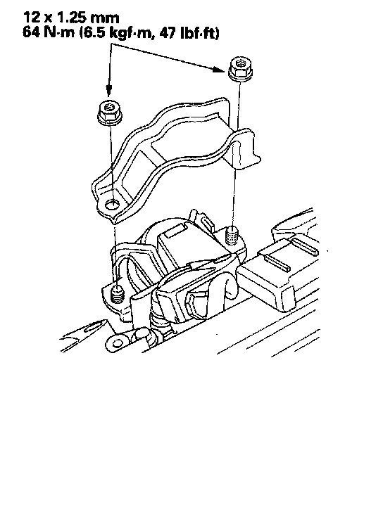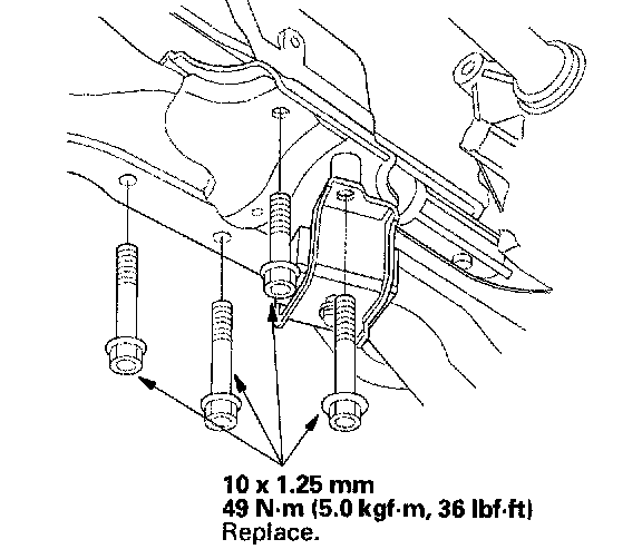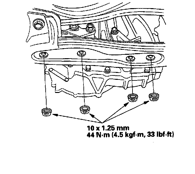 12. Install the transmission lower mount mounting nuts. mounting bolts, then front Dolts, and tighten the stiffener bolts to the specified torque.